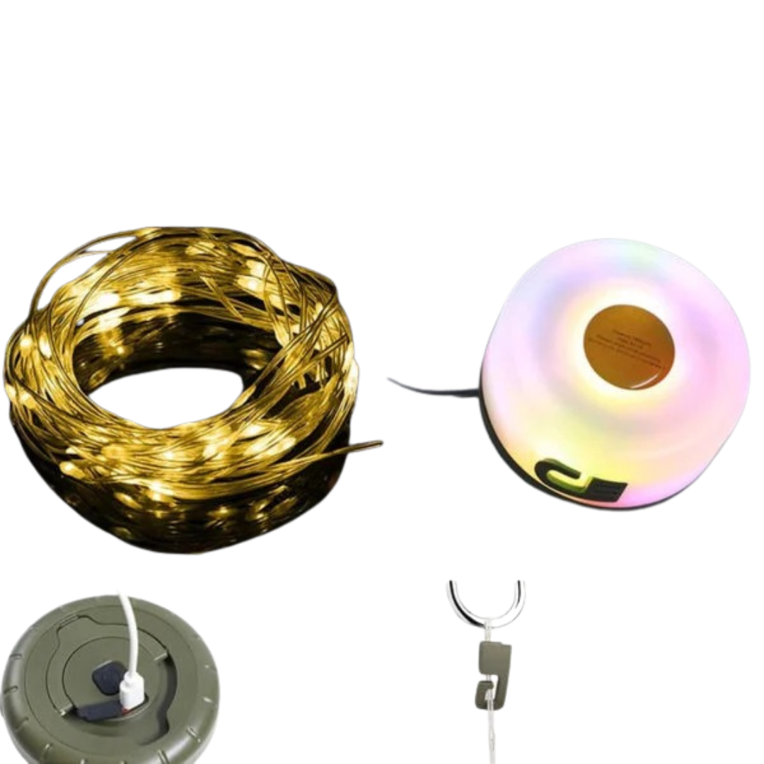 - تصميم 2 في 1 يتيح استخدام الفانوس كمصدر إضاءة مركزي والشريط الضوئي لتزيين المساحات الطويلة.