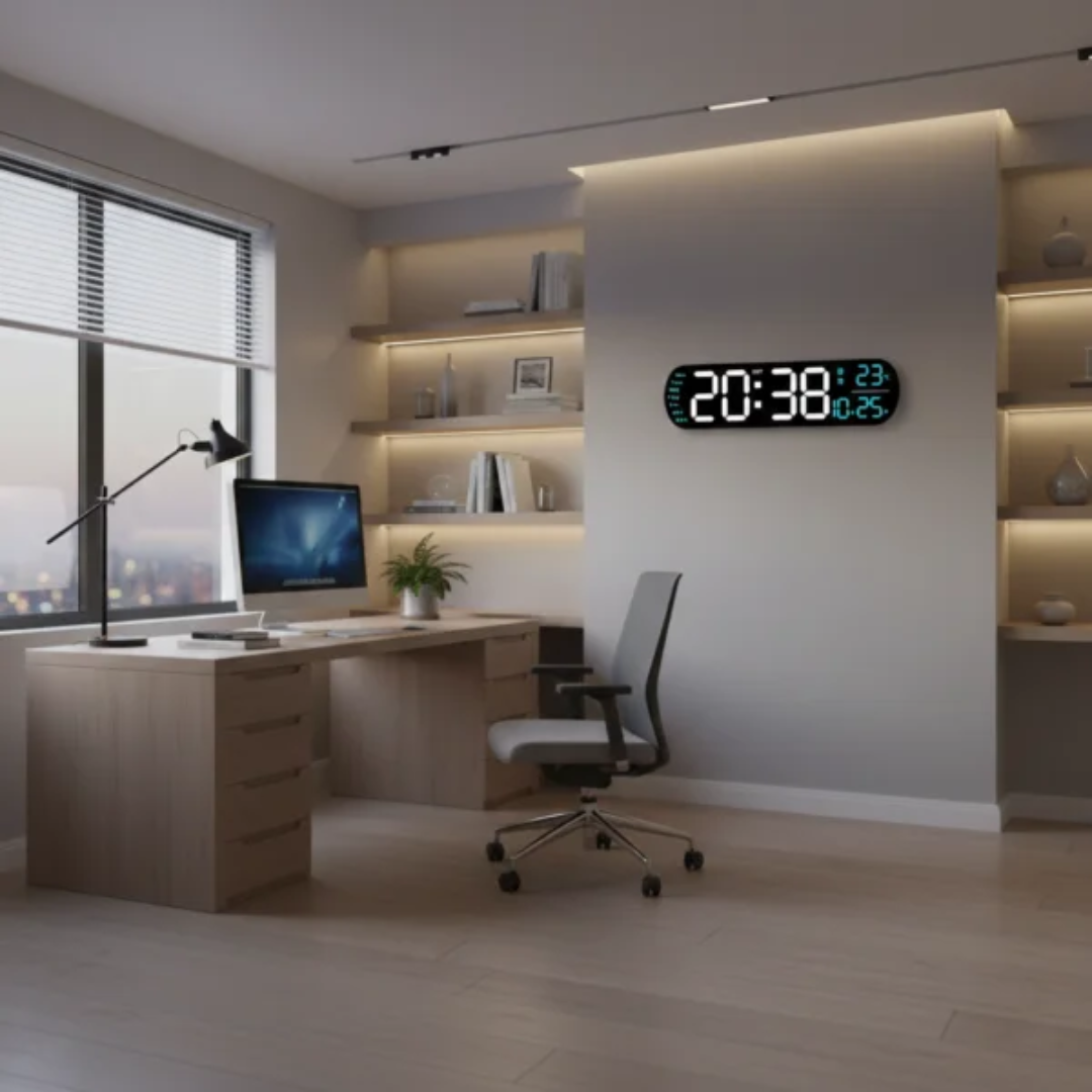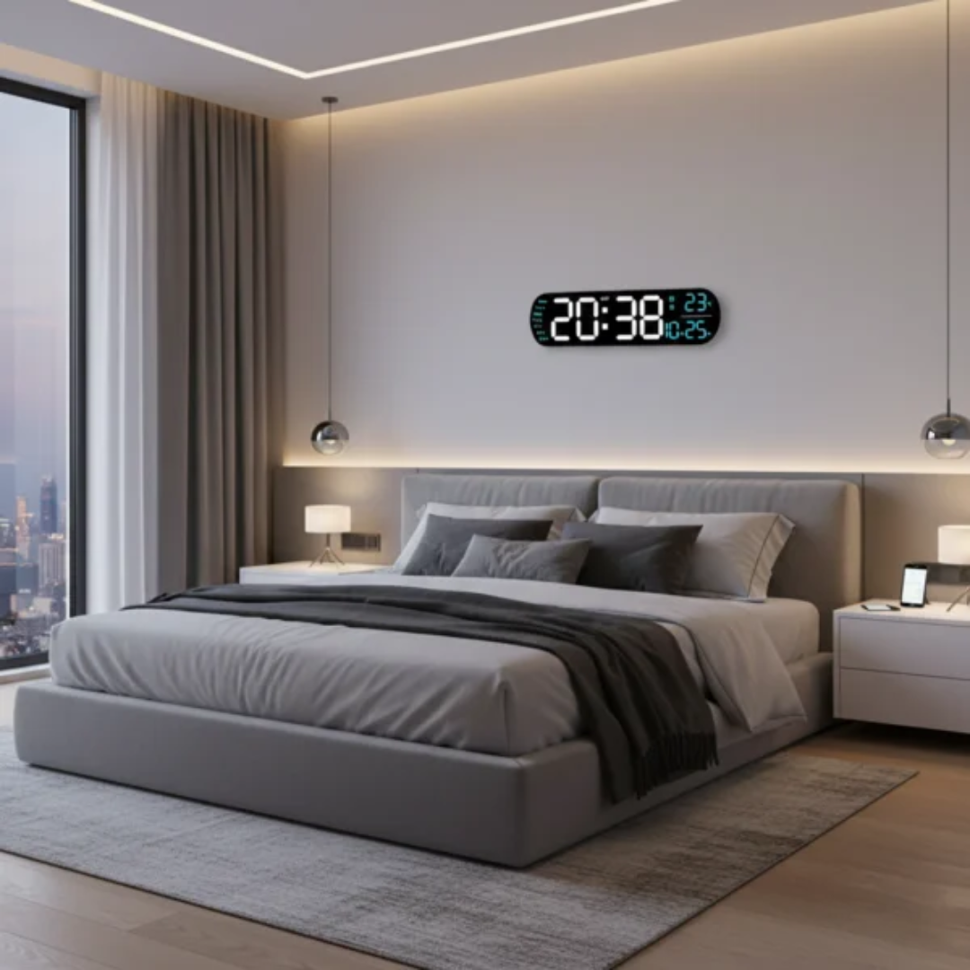 - شاشة LED كبيرة وسهلة القراءة من مسافات بعيدة، مناسبة لجميع غرف المنزل أو المكتب.