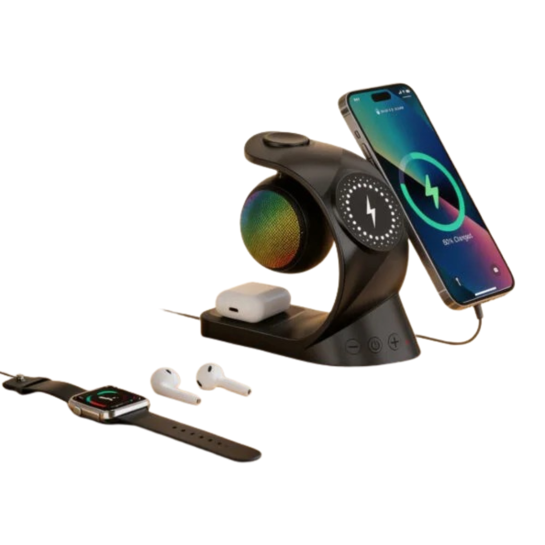 - شحن ثلاثي متزامن للهاتف والساعة وسماعات الأذن لتوفير الوقت والمساحة على المكتب
