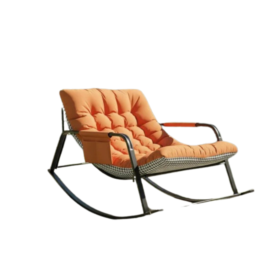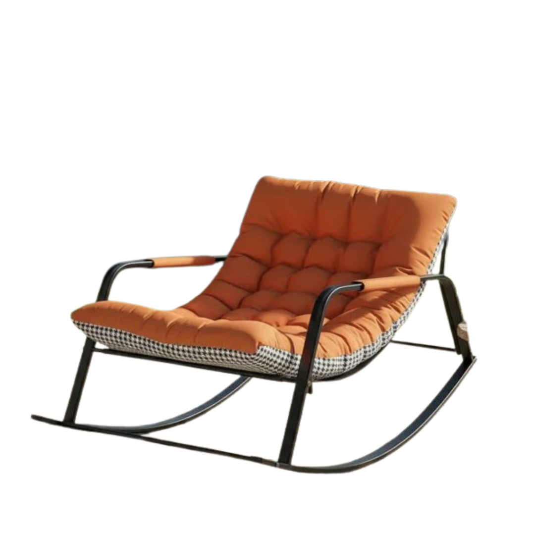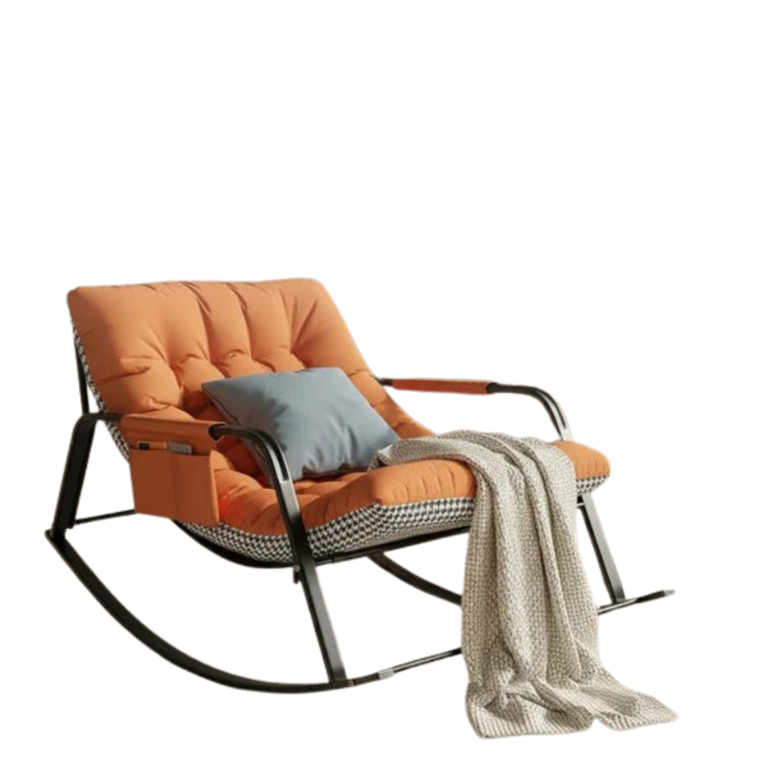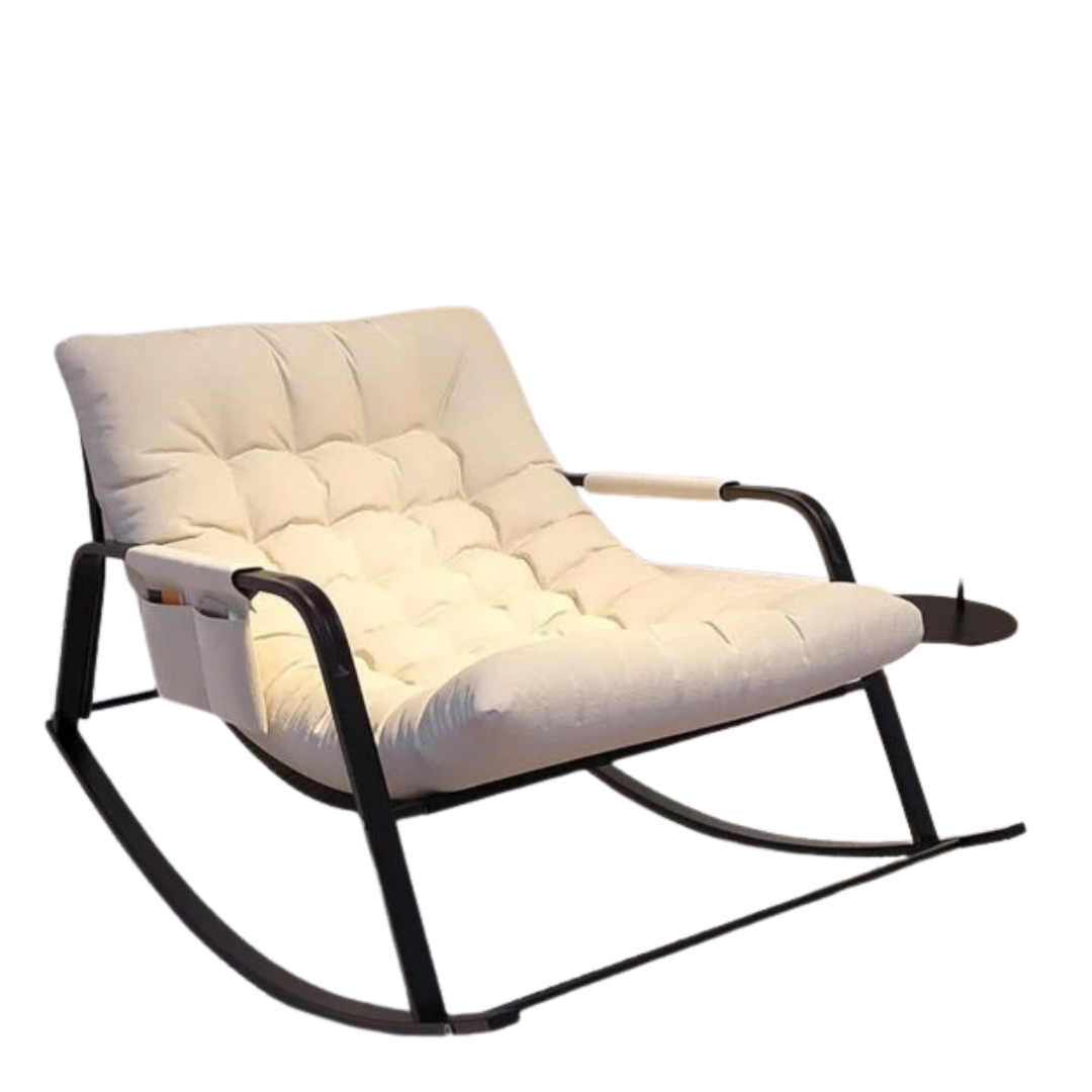 كرسي راحة هزاز حديث يوفر راحة استثنائية مع تصميم مريح ومتين، مثالي للاسترخاء في غرفة المعيشة أو الشرفة أو غرفة النوم، مع وسادة سميكة وداعمة وإطار معدني قوي لضمان جلسة هادئة ومريحة لساعات طويلة.