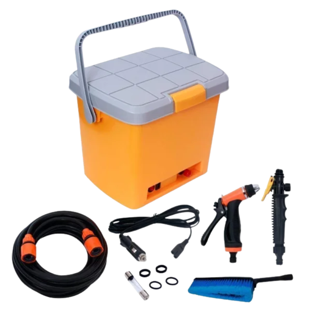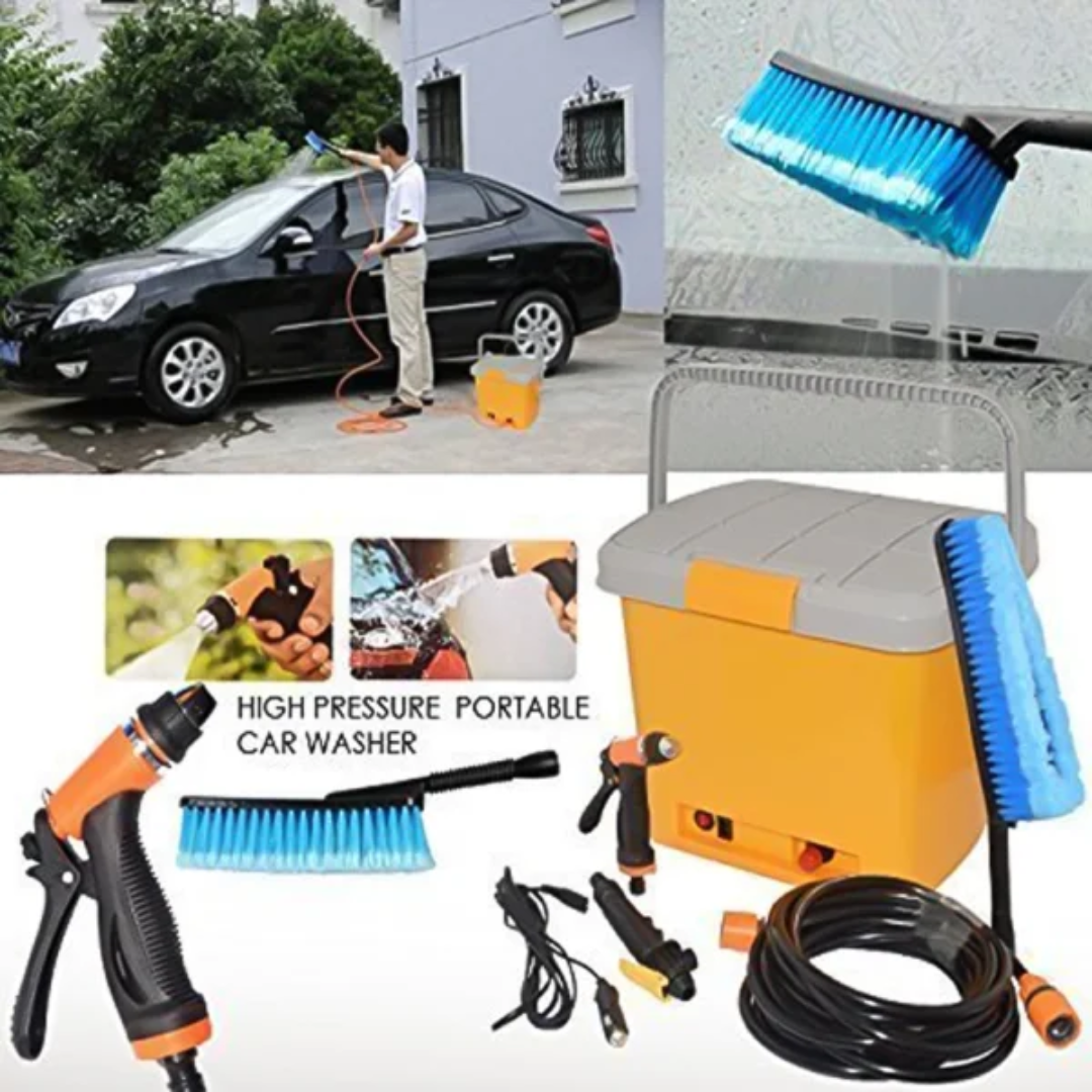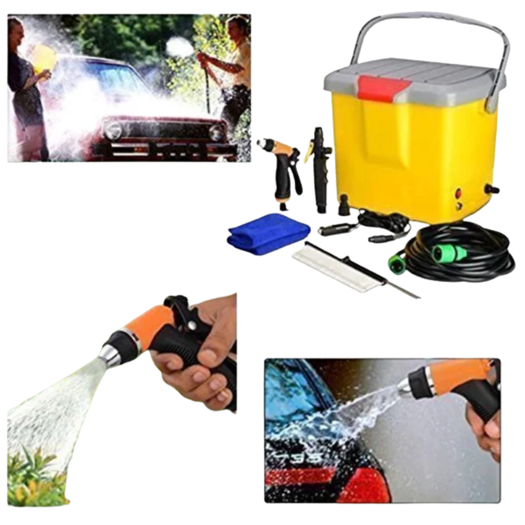 مغسلة السيارات المحمولة 12V توفر تنظيفًا فعالًا وعالي الضغط في أي مكان بدون الحاجة لتوصيل مباشر بالمياه، تصميم مدمج وسهل الحمل مع خزان كبير ومضخة قوية لتنظيف السيارة، الحدائق، الأرضيات والمناطق الخارجية بكفاءة وسرعة.
